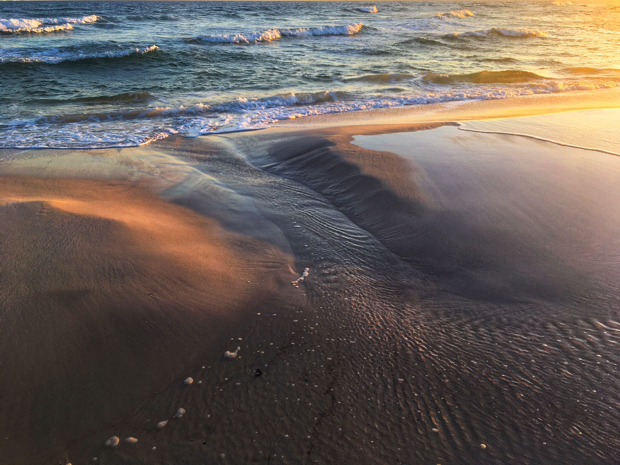 He clears a back room, so I may have a writing space of my own. He tells me, “Why not? Just write. Let me support you.” He plans to one day build a writing cabin. He can do this because his hands belong to his grandfather. On the days I am full of angst, he tells me not to worry about craft – take a break – relax. He tells me I have old tapes I need to let go – he acknowledges this takes time. I tell him I’m ready. He tells me he thinks I’m afraid of success. On Fat Tuesday, we dip Royal Reds in drawn butter. I tell him I’m more afraid people will laugh at me for trying – that I’m fooling myself about having anything good to share. He tells me it was worth missing the once-in-a-century Arkansas snow just to watch me play in the wind on the surf. I tell him I may be having an affair with his beard. He tells me my heart is the beauty. He makes the phrase, with God all things are possible, feel true. The curves of his love – the swirl when I am near his faith, eating and delighting in the fruits of his faith. He plans a gift for me I long for but don’t realize this longing until he reveals it to me. I tell him that I have no gifts for him. And he tells me, “I want one of your photographs. Let’s pick one and matte and frame it together.” Tears burn my eyes. He chops sweet onions and heats olive oil. He simmers fresh lemon peels and spices with wine. He adds white beans, and we take turns checking the pot. He tears chard and parsley as I dress in warm layers. Just before sunset, I return to the beach for a quick walk past the debris from the hurricane and catch the physics of light stretching ordinary shapes to beyond, the aroma of our homemade life wafting from my clothes. When I return, he ladles our meal into bowls and slices bread. He tells me maybe we have already died. I tell him, “Yes, I think you’re right.”